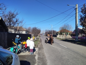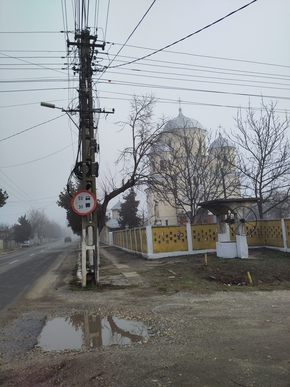 Nous sommes dans d’autres régions (județ) de Roumanie, plus plates avec de vastes étendues de culture. Dans les villages, des maisons gigantesques au style “gipsy” (peut-être familiales ?) en côtoient d’autres bien plus petites. De minuscules magasins d’alimentation petit-poucettent notre route alors que sur des bancs accolés aux maisons, de petits groupes de personnes papotent en profitant du soleil hivernal. Ils nous saluent très chaleureusement, nous sourient, nous souhaitent bonne route, un vrai bonheur.