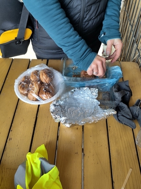 . Elles revient quelques minutes plus tard avec de la viande et des gâteaux, tout cela est préparé pour le réveillon du soir et il y a toujours plus pour les voyageurs. Nous nous posons devant une épicerie qui est sur le point de fermer. Pas de problème pour nous installer ici pour pique-niquer et l’épicière nous offre du jus, des fruits et quelques friandises pour les enfants…