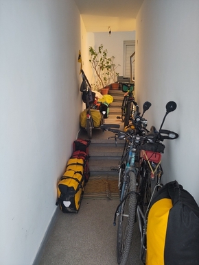 L’abord des grandes villes, toujours aussi agréable, mais ça se passe bien. Nous arrivons devant l’immeuble vide dans lequel nous passerons deux nuits. C’est l’avantage de voyager en hiver dans les lieux plus fréquentés en été, on trouve des logements plus facilement et à bon prix.