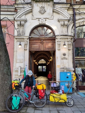 Nous traversons le Danube par l’énorme pont reliant Giurgiu à Roussé. Peu propice aux bicyclettes. Les automobilistes patientent gentiment et nous voilà en Bulgarie.