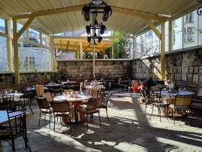 Le train est à 15h55 le lendemain, nous sommes donc carrément tranquilles. Nous plions nos affaires et laissons l’appartement, remontons sur nos vélos, cherchons un restaurant pour le repas du midi. Les enfants n’ont pas oublié que nous n’avons pas fait notre rituel de repas au restaurant pour le changement de pays… Un resto chic avec d’excellents produits sans que les prix soient exorbitants. Nous y passons un moment bien agréable et filons vers la gare.