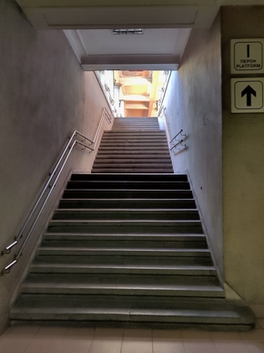 Au moment de gravir les marches, Valentin, qui parle un peu français, nous dit que nous pouvons passer plus loin et que ça mène au quai mais sans les marches. Allez ! Je ne l’avais pas vu cet accès, il faut dire qu’il est plutôt discret.