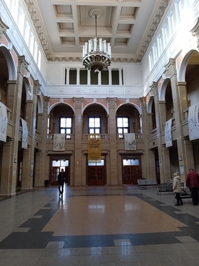 Bon, la piste cyclable jusqu’à la gare est très bien. C’est déjà ça. J’arrive devant l’immense gare de Roussé (Русе en bulgare). Entre la Gare de Lyon (à Paris) et le Tribunal de Grande Instance. Impressionnant. De belles marches pour accéder à la gare, pas de rampe. Le hall est majestueux. Il est vide. Nous sommes plus d’une heure avant le départ. Voie 1. Deux belles volées de marches pour accéder au quai, on va bien rigoler avec nos vélos et pas loin de 200kg de bagages.