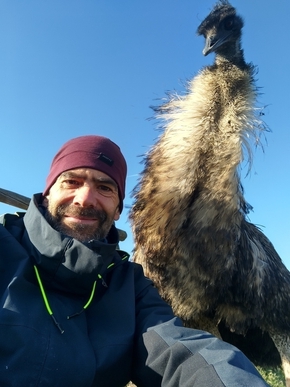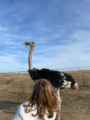 Nous voilà bien installés maintenant dans notre caravane. Lucie a pris à cœur de s’occuper des 3 chats et régulièrement du chien. Léon aime beaucoup rendre visite aux autruches et à l’émeu en semi liberté qui nous gratifie de nombreux câlins !