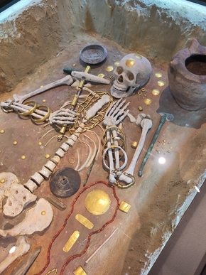 Nous sommes allés à Varna au musée d’archéologie où il y a des bijoux en or qui datent de l’âge de bronze. Nous avons même vu des squelettes qui portaient ces bijoux. Il y avait aussi des bagues incrustées de diamants et des gravures grecques dans la pierre avec des explications. Nous avons vu dessus des femmes gravées qui dansaient et des hommes qui chassaient.