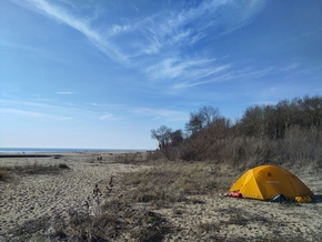 Nadia nous attrape à la sortie de chez Albena qui va au travail. Elle a préparé un gâteau. Elle sait que nous voulons aller voir la mer et aimerait venir avec nous. Son vélo a besoin d’une petite révision et elle nous demande un coup de main. Nous passons donc un petit moment chez elle puis nous enfourchons tous nos vélos pour descendre vers la mer. Nous sommes à 5 ou 6km. Nous pensions la longer pour la suite de notre voyage, mais Albena nous a indiqué un autre itinéraire, bien moins emprunté et qui nous conviendra mieux. Et il nous emmène dans les terres. Alors nous allons juste faire un coucou à la mer car demain, nous la quitterons.