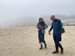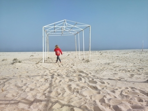 Nous trouvons sur l’immense plage déserte la brume qui nous accueille dans son coton mystique. Les enfants sont déjà pieds nus, leurs affaires abandonnées au milieu de nulle part et eux courant partout. De la joie à l’état pur. Une petite marche et nous préparons le repas. Retrouver le réchaud, tester cette nouvelle poêle, tenter de ne pas mettre de sable dans le plat malgré le vent et les enfants qui courent autour…