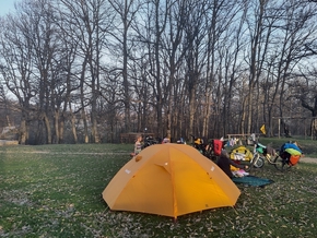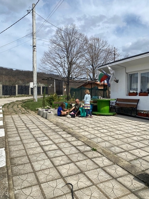 Nous roulons jusqu’à Golitsa. Ici, une femme toute en douceur et en sourire s’occupe d’une petite épicerie faisant office de café, qui nous offre une pause fort sympathique. On nous indique, après avoir appelé le maire, un lieu où nous avons l’autorisation de rester plusieurs nuits au besoin. Mais pour cela nous devons reprendre nos vélos et monter encore 5 km. Les enfants râlent. Mais ils comprennent que nous n’avons pas vraiment d’autre choix.