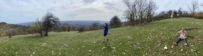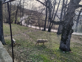 Nous posons enfin pieds à terre à l’endroit indiqué. Juste à côté, une micro ferme de chèvres, entre autres, et une vue magnifique ! Un peu plus bas la fontaine pour l’eau. Parfait. Nous voilà posés pour 2 nuits au moins. Marc pourra en profiter pour retourner au village travailler. Les enfants et moi nous verrons offrir par des marcheurs amateurs de vélos un magnifique sac d’ail des ours fraichement ramassé.