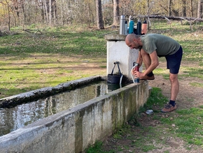 Maintenant c’est l’eau qui vient à manquer. Nous économisons la dernière gourde buvant gorgée par gorgée. Au prochain village une source devrait nous permettre de refaire le plein.