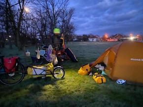 Nous voudrions rouler encore mais les enfants ont vraiment besoin que l’on s’arrête. Nous bifurquons vers Rajista. Nous prenons de l’eau à la fontaine et trouvons un pré à moutons pret à nous accueillir pour la nuit. Nous sommes dans une partie de la Bulgarie majoritairement musulmane et l’appel du muezzin retentit ce soir. Peu de temps après les gens se retrouvent en plus grand nombre sur la place. Nous sommes en plein ramadan.