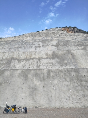 Nous quittons la plage de Pamucak très tôt le matin. Nous pédalons dès 7h. Il fait vite chaud en journée et nous allons démarrer par une longue côte. Selçuk, à droite, direction Aydin. Ça monte. Le soleil est déjà chaud. Le vent dans le nez ne simplifie pas. Fort heureusement, la route est large et il y a peu de voitures. Nous arrivons au sommet en même temps que deux cyclistes néo-zélandais, mais nous, nous avons terminé la côte en poussant les vélos !