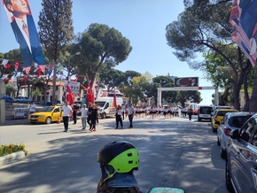 Nous partons de Nazilli en zigzagant autour de la route nationale. La pause est la bienvenue lorsque nous arrivons à Kuyucak. Tambours et trompettes, un défilé de jeunes gens, mené par des enseignants sans doute, déambule dans la rue. C’est la semaine de la jeunesse et des sports qui se termine par un jour férié célébrant le début de la guerre d’indépendance en Turquie.