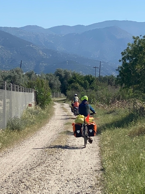 L’heure de poser la tente arrive. Nous sommes sur un chemin entre oliviers, route nationale et champs. Nous croisons des agriculteurs et leur demandons où nous pourrions poser la tente. Direction un champ d’oliviers un peu plus loin. Puis un autre homme arrive, discute avec eux et m’emmène 50m plus loin. Une maisonnette, une terrasse, l’eau, l’électricité. L’homme connait le propriétaire qui arrive et nous ouvre la porte de sa maison d’été. Nous pouvons prendre une douche, aller au toilettes, boire un café, etc. Quel accueil !