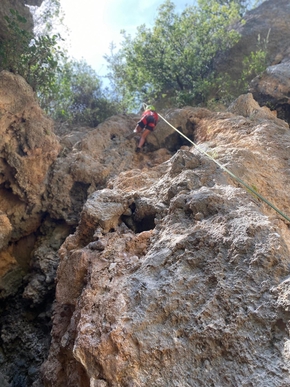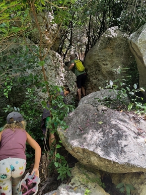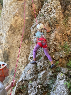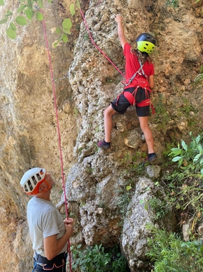 Nous nous essayons également à l’escalade. Léon a très envie d’en faire depuis longtemps. J’avais initié Estelle à ce sport il y a bien longtemps maintenant. J’ai grand plaisir à grimper à nouveau et à voir les enfants sur une paroi.
