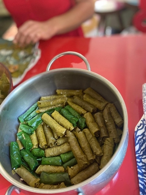 Enfin, nous nous régalons, car Semra est une excellente cuisinière. Elle adore préparer et partager les plats traditionnels Turcs et nous adorons les découvrir et les déguster. Estelle prend des cours de sarma (les feuilles de vignes farcies au riz) et autres merveilles gustatives. Nous pouvons également admirer la maestria des femmes préparant les gözleme et nous promener dans les allées colorées des marchés.