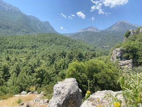 Nous voilà grimpant la route de Geyikbayırı en voiture. En voyant le dénivelé, je nous félicite intérieurement d’avoir laissé les vélos au bord de la mer. Les pics qui encerclent Antalya sont impressionnants. En hiver, il est possible de skier et nager dans la mer dans la même journée. Nos deux amis sont passionnés par la montagne. Ils se sont d’ailleurs rencontrés au somment du pic qui domine le coin. Semra est une excellente grimpeuse et faisait partie de l’équipe des premiers secours. Alan est canadien et a parcouru les montagnes du grand nord dans des conditions extrêmes. Le village est une étape incontournable pour de très nombreux grimpeurs du monde entier. Des falaises équipées partout dans un paysage sublime.