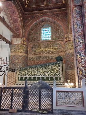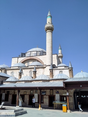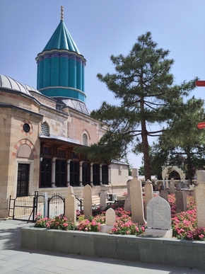 Vélos posés, nous pouvons enfin accéder au musée de Mevlana ou Rûmî. Le lieu est magnifique et les objets que l’on peut y voir sont absolument sublimes. L’œuvre de ce poète et mystique du XIIIè siècle est d’une très grande profondeur et d’une immense richesse. Nous en connaissions quelques bribes et la visite de ce lieu confirme l’intérêt que nous lui portons. Nous aimerions tant assister à une cérémonie des fameux derviches tourneurs dont il est à l’origine, mais cela ne sera pas pour cette fois.