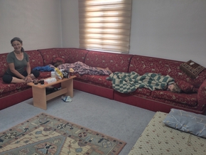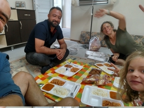 Nous finissons cependant par sortir de cette gigantesque zone industrielle pour arriver en rase campagne. Nous demandons à Mehmet si nous pouvons planter la tente là et nous voilà devant une table avec un repas exquis. Yurdagül, son épouse, et leurs enfants Hasan et Merve sont là également pour écouter notre récit.