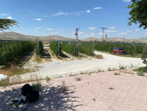 Erdoğan gère un verger de pommiers bio. Il gère également plusieurs centaines de ruches. Cette année, le gel est arrivé au moment de la floraison des pommiers, le rendement sera quasi nul. Le verger se trouve à proximité directe d’une carrière.