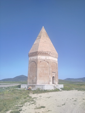 Nous avançons encore un peu. Il fait chaud. Nous trouvons à poser la tente auprès d’un magnifique tombeau datant de l’époque Seldjoukide. L’endroit est très paisible et nous avons besoin de calme et de repos. Le tombeau est entouré de deux tumulus. Manifestement, sur ce lieu et ses alentours, se trouvaient des vestiges archéologiques qui ont peu pesé face à l’intérêt des prospecteurs d’or qui se trouvait dans le sol ici. Nous n’aurons donc pas vraiment compris l’histoire de ce tombeau.