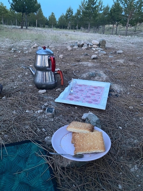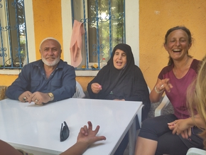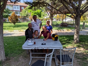 Quel bon temps échangé. Je me fais inviter à partager le repas d’un des propriétaires du lieu. Nous rencontrons également Mehmet. Il parle quelques mots de français. Il a l’œil pétillant et un air malicieux. Nous discutons un peu, puis il doit partir. Il revient plus tard et nous fait faire un détour par chez lui au moment où nous voulions partir. Il nous emmène dans sa belle voiture neuve dont il est très fier et nous accueille chez lui. Nous passons un très bon moment autour d’un thé et de quelques victuailles.