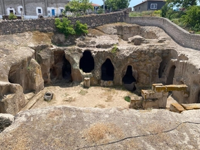 Un enfant grimpe par dessus le muret et descend dans le site en nous incitant à le suivre. Nos enfants sont déjà en bas quand je me décide à passer le pas. Estelle reste sagement en haut. Le jeune garçon connaît très bien les lieux et me fait une visite express en Turc de la seule citée souterraine qui servait de caravansérail. Nous ne nous attardons pas et retrouvons la rue et le salon de thé qui accueille les habitants du village en ce jour de fête.