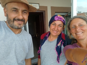 . Nous arrivons en haut d’une bonne côte et sommes interpelés par Selahattin et sa famille. Sa ferme est là, il nous offre du fromage, de l’eau, des œufs, un sucuk puis nous invite à le suivre vers sa maison qui est dans le village plus bas. Nous y assistons à la traite de la vache et sommes invités à y dormir pour la nuit. Eux vont dormir à la ferme. Ils nous laissent la maison.
