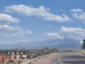 Le lendemain débute par une longue côte mais la suite est bien plus facile. Nous rejoignons la nationale avec bas-côté qui nous mène aux abords de Kayseri. Nous visons un parc qui pourrait peut-être convenir pour notre tente.