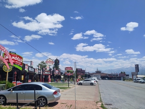 Repas en ville, grande promenade dans le bazar, rencontre de Enver, marchand de tapis francophone peu zélé qui, au lieu de nous vendre ses tapis, m’accompagne au magasin de vélos. Il a appris le Français à l’école et prend un plaisir visible à le pratiquer avec nous.
