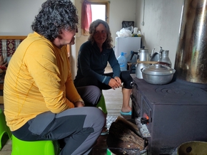 Nous sommes le 21 juin, c’est le solstice d’été et nous sommes dans la neige et sous la pluie à 2300m d’altitude. Avant d’allumer le feu, nous devons remettre en état le conduit de cheminée. Avant de faire la cuisine, nous devons aller chercher de l’eau.