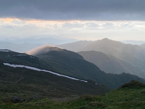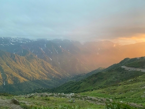 Juste avant le coucher du soleil du jour le plus long de l’année, nous avons droit à une petite éclaircie offrant des percées et une lumière fantastique sur le paysage de haute montagne. Quelle claque.