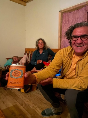 La soirée se termine avec un petit coup de tchatcha, cognac géorgien partagé entre amis et une petite sortie sous la voûte étoilée absolument impressionnante. Plus un nuage dans le ciel, pas une lumière à l’horizon, une voie lactée comme jamais, nous sommes estomaqués.