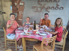 Un très très jeune conducteur nous salue, sa mère à ses côtés. En Géorgie, il semblerait que l’apprentissage de la conduite se fasse très tôt et que les conducteurs s’offrent beaucoup de liberté… Les amendes sont insignifiantes lorsque la police nous arrête