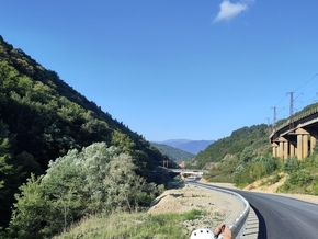 Nous sommes quasiment seuls sur cette route flambant neuve. Les glissières de sécurités en acier galvanisé sont encore brillantes et nous voyons les traces d’une pose récente, ficelles, gants de travaux éparpillés…