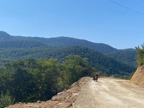 Puis nous arrivons au pied d’un massif montagneux qui se dresse entre nous et notre destination. Cela arrive beaucoup en Géorgie… Nous allons le contourner, bien-sûr. Une des deux vallées est dédiée à l’autoroute, alors prenons l’autre.