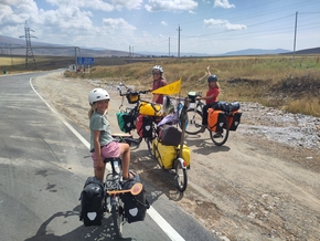 Les filles entament la dernière montée, la plus longue. Pendant ce temps, j’essaie de bricoler le porte-bagages de Léon. La pause à Gyumri risque de durer plus longtemps que prévu, le temps de faire les réparations et achats nécessaires.