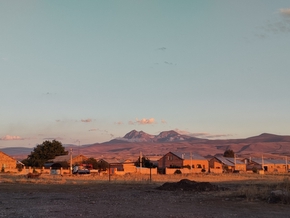 J’aperçois un arbuste sur une petite butte au loin, maigre espoir, je m’y rends pour voir si la place serait propice à accueillir notre tente. Bingo ! Le contraste est impressionnant. Ici le vent est coupé par ce tout petit obstacle. Le soleil est radieux et l’endroit offre une vue absolument magnifique sur le massif de l’Aragats.