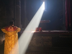 Un lacet de la route est sensé nous faire éviter une magnifique église. Nous décidons de ne pas l’éviter bien que la route qui y mène soit bien plus difficile. Nichée sur les parois d’un canyon grandiose, elle domine la vallée verdoyante et délicieusement fraîche.