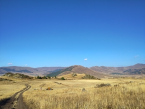 L’ascension est tranquille, nous avons fait le plus dur hier, de loin. Puis c’est la pente douce qui nous emmène à Ալագյազ (Alagyaz). C’est là que nous prendrons le petit-déjeuner.