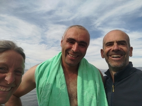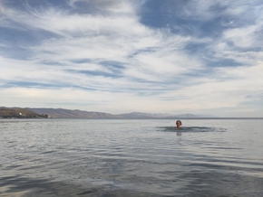 Lors de notre première sortie en bord de lac, nous croisons un homme qui vient nous saluer chaleureusement. Je l’ai déjà vu, je le sais, mais où ? Après quelques mots échangés, ça me revient ! Le propriétaire de la vache qui était venu nous saluer lors de notre première nuit arménienne ! Il est là avec son frère et des amis, le monde est petit.