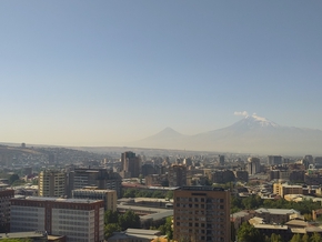 Depuis le bus, je peux admirer la vue sur l’impressionnant mont Ararat. Culminant à 5137m, c’est, pour beaucoup, le symbole de l’Arménie. On le voit dans des logos, dans des noms de marques, etc. C’est aussi la partie la plus visible d’une blessure encore béante. Le mont se trouve dans l’actuelle Turquie et a été le théâtre de massacres lors du génocide arménien qui n’est toujours pas reconnu par la Turquie.