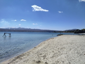 Après mes quelques jours de travail, nous avons prévu de faire le tour du lac. Nous le longeons sur quelques kilomètres pour rejoindre une plage qu’Estelle et les enfants ont découverte quelques jours plus tôt. Nous nous arrêtons pour le repas du midi, une grosse envie de flâner. Il fait très beau et c’est très calme…