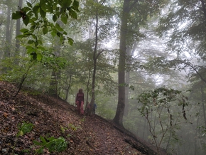 Descendre vers Dilidjan, c’est changer totalement de paysage. Jusque là, l’Arménie que nous avons vue est pelée. Quasiment pas d’arbres sur les montagnes ou dans les vallées, des foins ou des cultures. Une fois le col passé, nous plongeons dans une forêt luxuriante. Ça sent l’humus et les champignons et cela nous met en joie. Nous sommes galvanisés par la présence des vieux arbres et l’énergie que dégage cet écosystème dans lequel nous nous sentons si bien. On ne peut pas dire que ça nous avait manqué, mais cela nous fait grand bien de le retrouver.