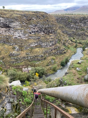Nous nous engageons sur l’échelle vertigineuse et pas tout à fait rassurante pour atteindre le fond du canyon et renonçons. Il est déjà trop tard pour tenter une expérience de mort imminente, mais la vue vaut le détour et l’échelle, tous les manèges à sensation des fêtes foraines en plastique et décibels.