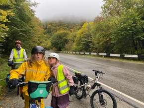 C’est mal connaître notre chauffeur qui fait des miracles avec mon aide et tout rentre (nonobstant la sécurité des passagers en cas de pépin). Les au revoir sont brefs mais bien lacrymaux et nous voilà partis pour quelques kilomètres de taxi. Arrivés en haut, il suffit de tout décharger et de remettre les vélos dans l’ordre et dans l’axe. Cela prend un peu de temps tout de même. Et zou, nous descendons vers Վանաձոր (Vanadzor).
