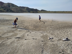 Clairement, très peu de monde fait le tour du lac. Le sentier disparaît dans une végétation basse et sèche, mais quelle balade magnifique. Elle nous invite à nous déposer sur la rive opposée offrant un terrain de jeu idéal pour les enfants : du soleil, de la boue, de l’imagination, le bonheur.