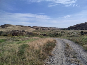 Le paysage est dépouillé, rasé, aride. Les lits secs des cours d’eau sont explicites. Il est des conditions météorologiques où la puissance de l’eau doit être terrible. En témoigne ce pont détruit qui complique légèrement la traversée à gué d’un profond et étroit ruisseau.