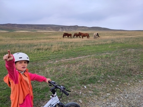 Les enfants font tour à tour appel à leur volonté et à leur détermination, déployant des stratégies pour se motiver individuellement ou se soutenir mutuellement. L’un s’effondre car c’est trop dur et quelques minutes plus tard a su trouver les ressources en lui et dépasse tout le monde, l’autre va chercher des chemins parallèles dans l’herbe pour éviter les cailloux, ou roule avec adresse dans les traces étroites dessinées par les vaches… Quelle école !