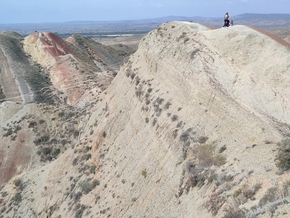 L’état des sols, de cette terre craquelée en écailles colorées dans ces pentes abruptes, nous invite à réfléchir au phénomène de l’érosion, au caractère éphémère du paysage que nous arpentons, à imaginer la différence d’effet entre une pluie douce ou forte sur un tel sol.
